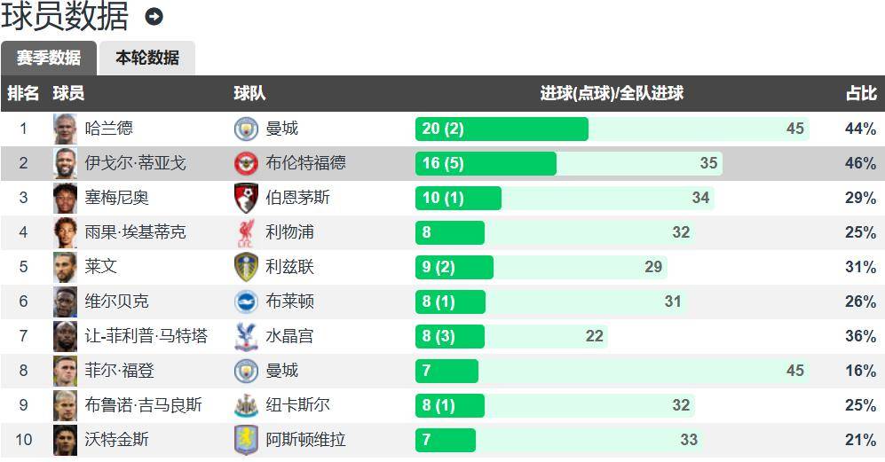 对阵桑德兰打入2球之后,伊戈尔-蒂亚戈本赛季的英超进球数已经上升至16球,在英超射手榜上仅次于20球的哈兰德,排名第二。伊戈尔-蒂亚戈英超单赛季16球已经打破了英超巴西球员单赛季的进球纪录,这个赛季还剩下一半赛程,伊戈尔-蒂亚戈会把这个纪录继续推高。